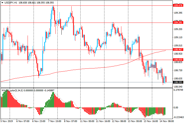Пара USD/JPY торгуется со снижением, достигнув недельного минимума Y108.60. USD/JPY опустилась ниже уровня скользящей средней МА (200) Н1 (Y108.95), но на четырехчасовом графике торгуется выше МА (200) Н4 (Y108.35), оставаясь под контролем быков. В этой ситуации пока стоит придерживаться северного направления в торговле и искать точки выхода на покупку.