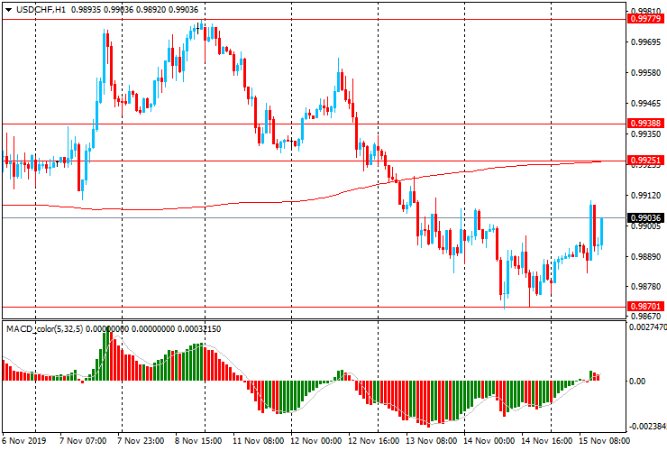 Пара USD/CHF торгуется с ростом после достижения вчера двухнедельного минимума Chf0.9870. Пара полностью вернула утраченные вчера позиции. USD/CHF продолжает торговаться ниже уровня скользящей средней МА (200) Н1 (Chf0.9925), и на четырехчасовом графике ниже МА (200) Н4 (Chf0.9925), что говорит о возможном переходе пары под контроль медведей. В этой ситуации стоит начать придерживаться южного направления в торговле и искать точки выхода на продажу.