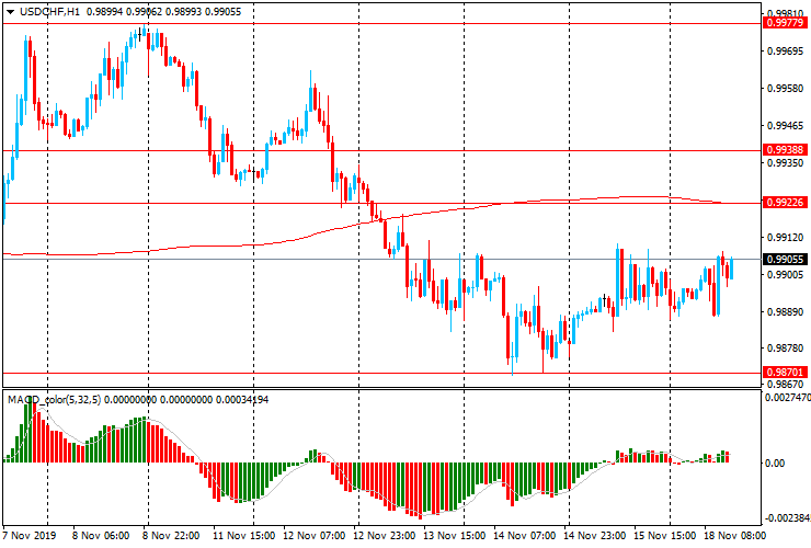 Пара USD/CHF торгуется в диапазоне Chf0.9890-0.9905 и пытается прорвать максимум 14-15 ноября. USD/CHF продолжает торговаться ниже уровня скользящей средней МА (200) Н1 (Chf0.9920), и на четырехчасовом графике ниже МА (200) Н4 (Chf0.9925), что говорит о возможном переходе пары под контроль медведей. В этой ситуации стоит начать придерживаться южного направления в торговле и искать точки выхода на продажу.