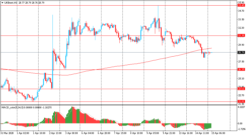 Вчера нефть марки Brent торговалась с понижением и закрыла день в красной зоне около цены $28.70. Сегодня нефть торговалась в узком диапазоне $28.45-00, оставаясь около вчерашней цены закрытия. На часовом графике Brent тестирует на прочность поддержку - линию скользящей средней МА (200) Н1 ($29.40). На четырехчасовом графике нефть пока остается ниже линии MA 200 H4. Исходя из вышесказанного, вероятно, стоит придерживаться южного направления в торговле и пока Brent остается ниже MA 200 H1, необходимо искать точки входа на продажу на формирование коррекции.