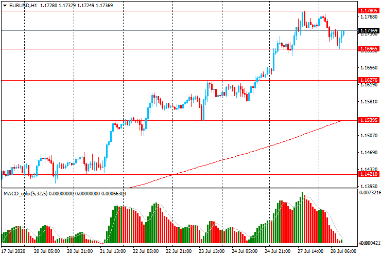 Альтернативный сценарий - прорыв сессионного минимума $1.1695 и снижение к $1.1625 (максимум 23 июля)