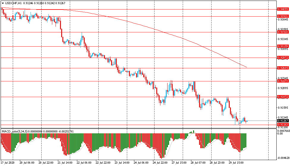 Уровни поддержки расположены на: Chf0.9120, Chf0.9075, Chf0.9000