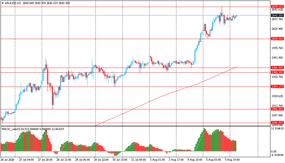 Основной сценарий продвижения пары — продолжение роста к $2055 (максимум 5 августа). Альтернативный сценарий подразумевает закрепление ниже MA 200 H1 с последующим снижением к $1940 (минимум 30 июля).