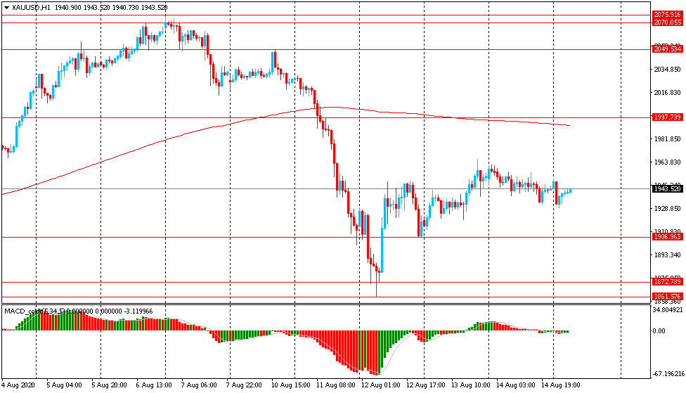 Основной сценарий продвижения пары — продолжение снижения к $1906 (минимум 13 августа). Альтернативный сценарий подразумевает закрепление выше MA 200 H1 с последующим ростом к $2050 (максимум 10 августа).