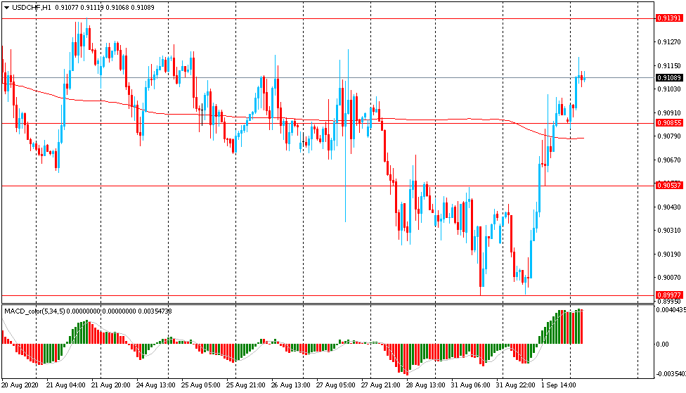 Уровни поддержки расположены на: Chf0.9085, Chf0.9055, Chf0.9000
