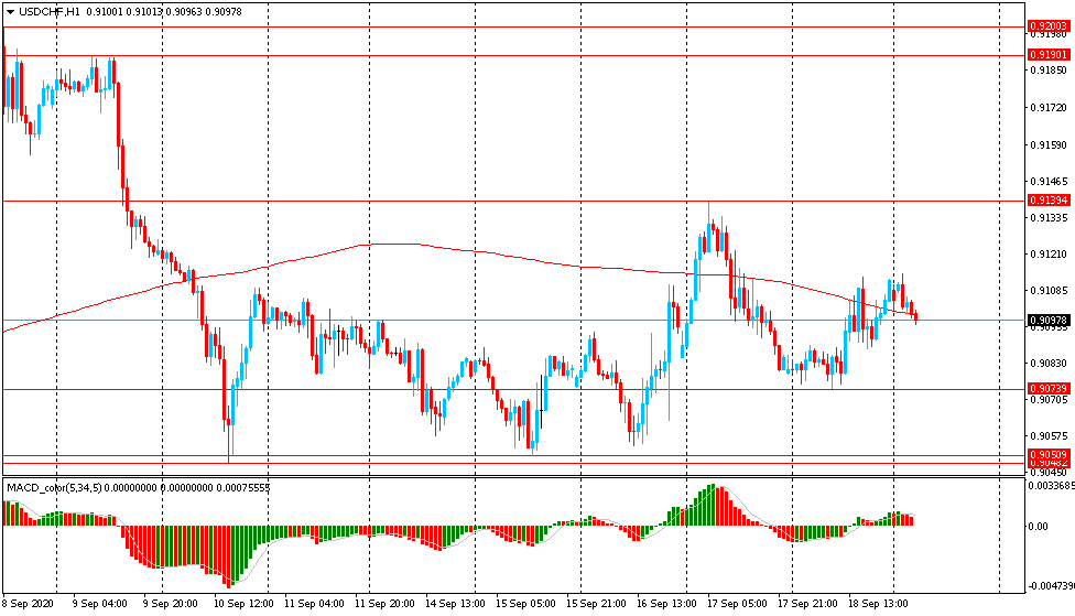 Основной сценарий продвижения пары — последующее снижение к Chf0.9075 (минимум 18 сентября). Альтернативный сценарий — закрепление выше уровня MA 200 H1, с последующим ростом к Chf0.9190 (максимум 9 сентября).