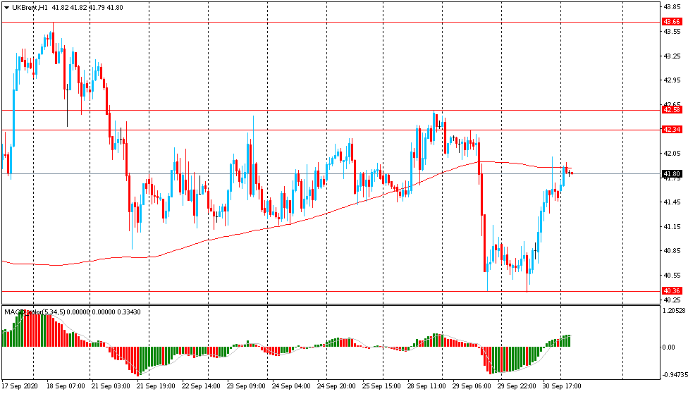 Основной сценарий продвижения пары — последующее снижение к $39.45 (минимум 1 октября). Альтернативный сценарий предполагает закрепление выше MA 200 H1 с последующим ростом к $43.65 (максимум 18 сентября).