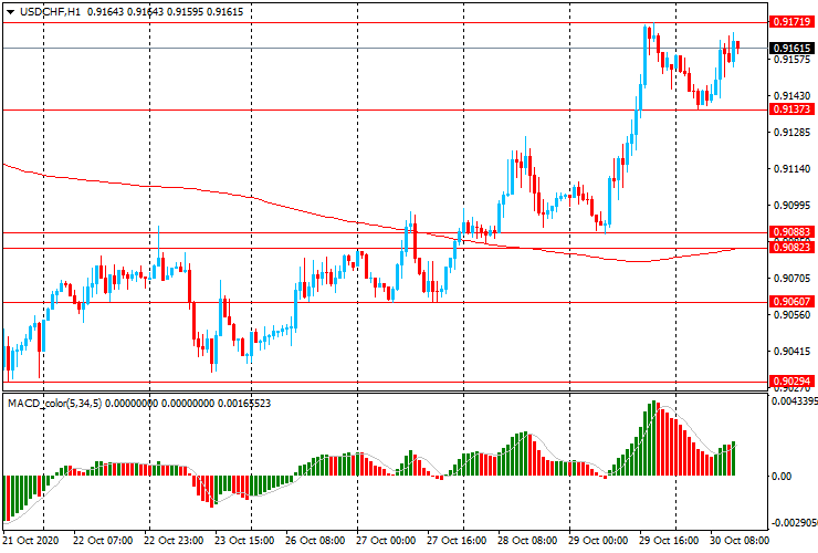 Альтернативный сценарий — прорыв вчерашнего максимума Chf0.9170 и продолжение восходящего движения к Chf0.9195 (максимум 8 октября)