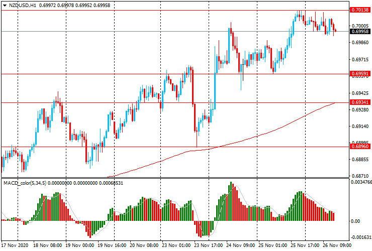 Альтернативный сценарий - прорыв области $0.6935-60 (минимум 25 ноября, МА (200) Н1) и может быть снижение к $0.6895 (минимум 23 ноября)