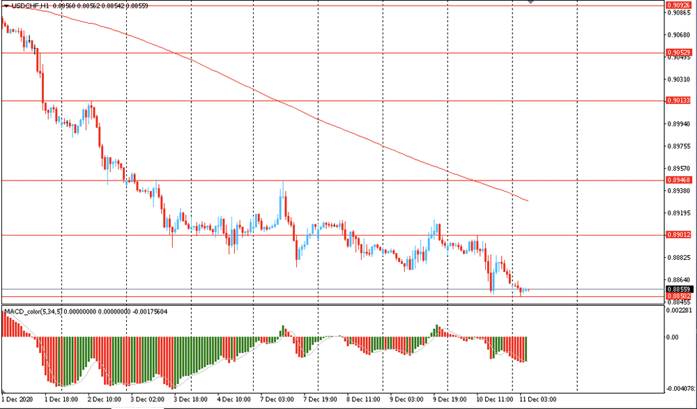Уровни поддержки расположены на: Chf0.8850, Chf0.8800, Chf0.8700