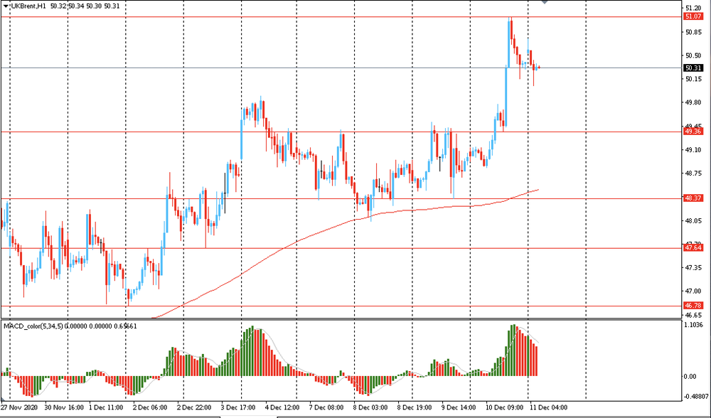 Основной сценарий продвижения пары — последующий рост к $51.05 (максимум 10 декабря). Альтернативный сценарий предполагает закрепление ниже MA 200 H1 с последующим снижением к $46.80 (минимум 2 декабря).