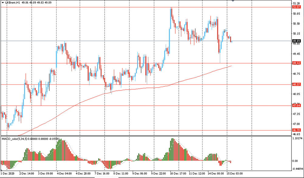 Основной сценарий продвижения пары — последующий рост к $51.05 (максимум 10 декабря). Альтернативный сценарий предполагает закрепление ниже MA 200 H1 с последующим снижением к $46.80 (минимум 2 декабря).