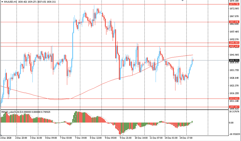 Основной сценарий продвижения пары — продолжение восходящего движения к $1847 (максимум 11 декабря). Альтернативный сценарий подразумевает закрепление ниже MA 200 H1 с последующим снижением к $1807 (минимум 2 декабря).
