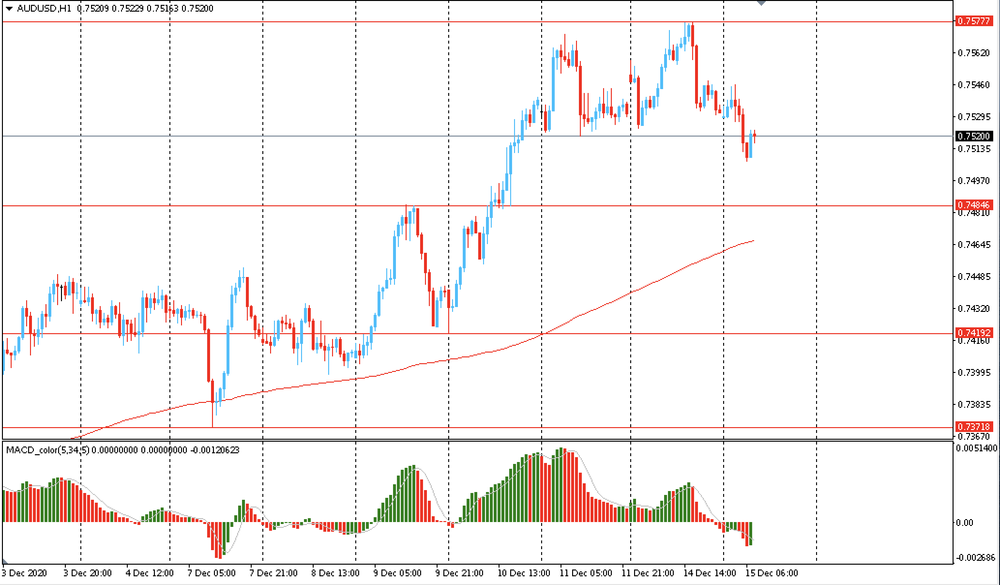 Основной сценарий продвижения пары — продолжение восходящего движения к $0.7575 (максимум 14 декабря). Альтернативный сценарий - закрепление ниже MA 200 H1 с последующим снижением к $0.7375 (минимум 7 декабря).