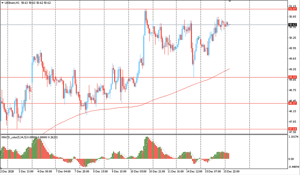 Основной сценарий продвижения пары — последующий рост к $51.05 (максимум 10 декабря). Альтернативный сценарий предполагает закрепление ниже MA 200 H1 с последующим снижением к $47.65 (минимум 3 декабря).
