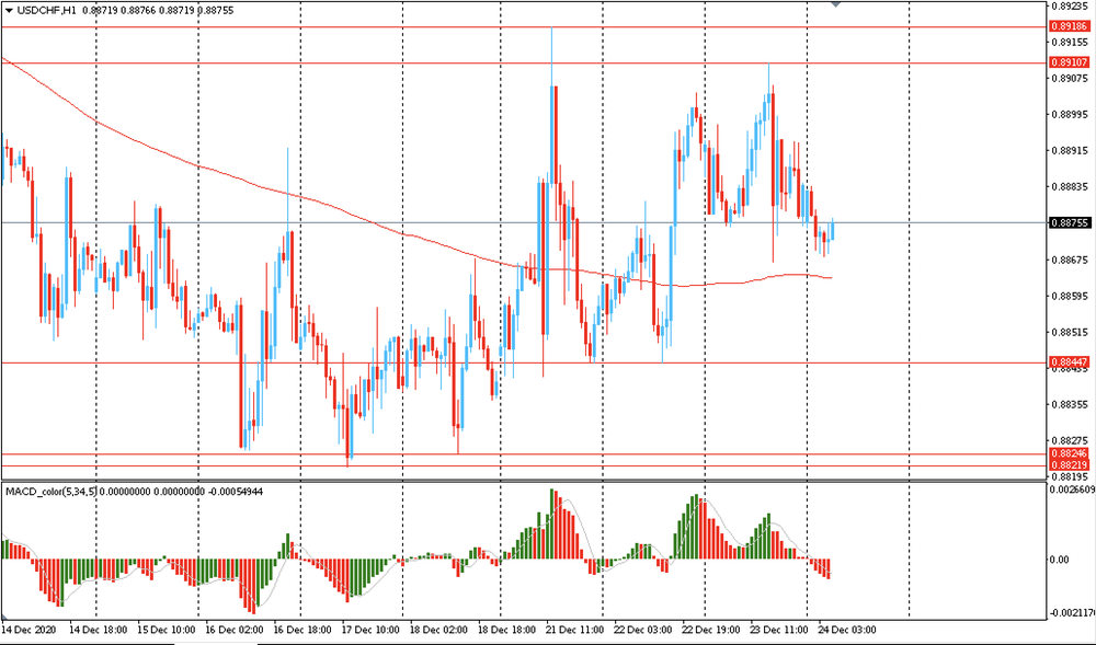 Основной сценарий продвижения пары — последующее снижение к Chf0.8845 (минимум 22 декабря). Альтернативный сценарий — окончательное закрепление выше уровня MA 200 H1, с последующим ростом к Chf0.8915 (максимум 21 декабря).