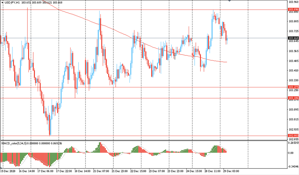 Основной сценарий продвижения пары — продолжение нисходящего движения к Y103.30 (минимум 22 декабря). Альтернативный сценарий предполагает закрепление выше MA 200 H1, с последующим ростом к Y104.15 (максимум 15 декабря).