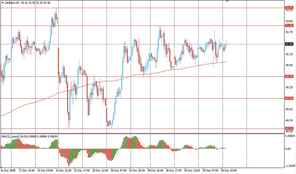 Основной сценарий продвижения пары — последующий рост к $51.90 (максимум 28 декабря). Альтернативный сценарий предполагает закрепление ниже MA 200 H1 с последующим снижением к $49.15 (минимум 23 декабря).