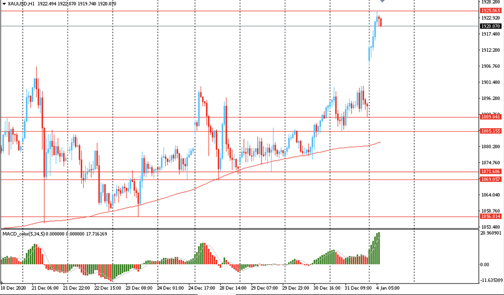 Основной сценарий продвижения пары — продолжение восходящего движения к $1925 (сессионный максимум). Альтернативный сценарий подразумевает закрепление ниже MA 200 H1 с последующим снижением к $1845 (минимум 16 декабря).