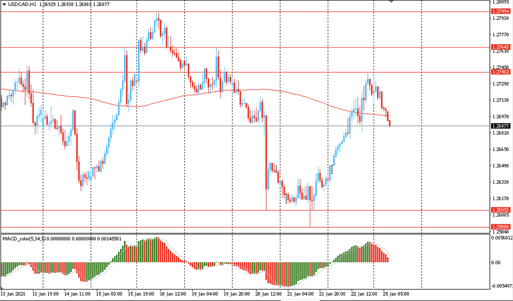 Основной сценарий продвижения пары — продолжение снижения к С$1.2605 (минимум 20 января). Альтернативный сценарий — окончательное закрепление выше МА (200) Н1 с последующим ростом к С$1.2800 (максимум 18 января).