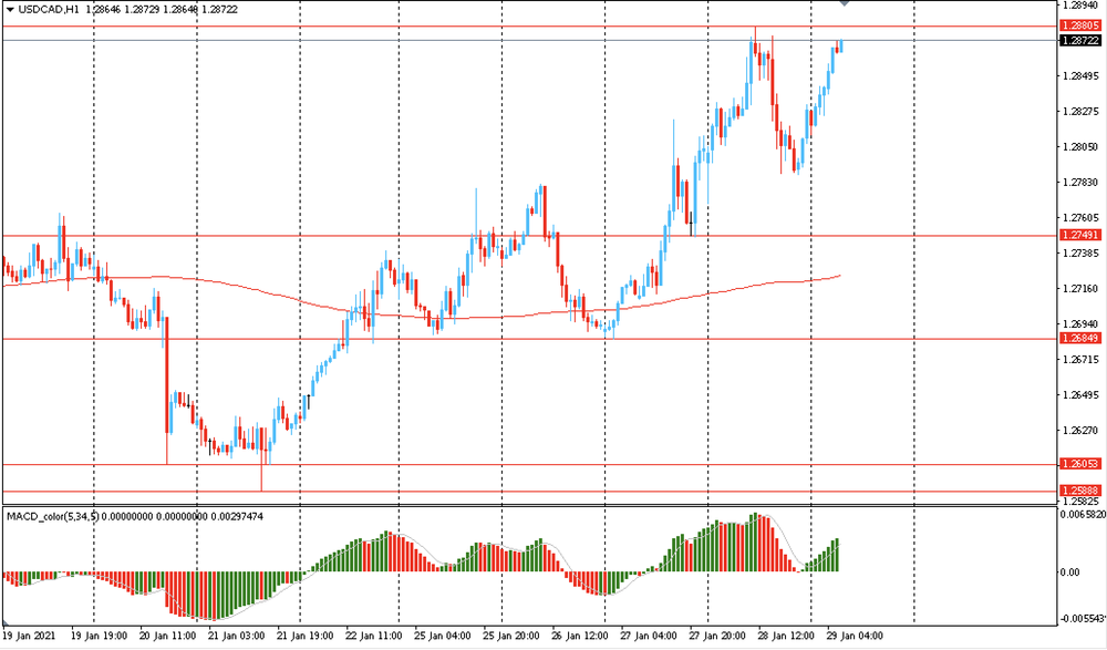 Основной сценарий продвижения пары — продолжение роста к С$1.2880 (максимум 28 января). Альтернативный сценарий — окончательное закрепление ниже МА (200) Н1 с последующим падением к С$1.2590 (минимум 21 января).