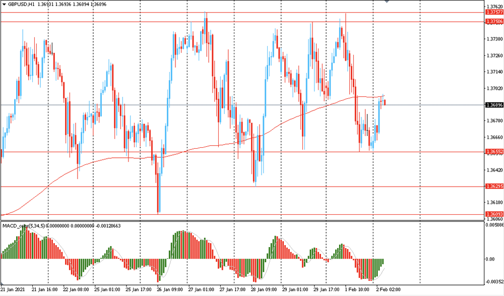 Основной сценарий продвижения пары — рост к $1.3750 (максимум 29 января). Альтернативный сценарий подразумевает закрепление ниже уровня MA 200 H1 с последующим снижением к $1.3610 (минимум 26 января).