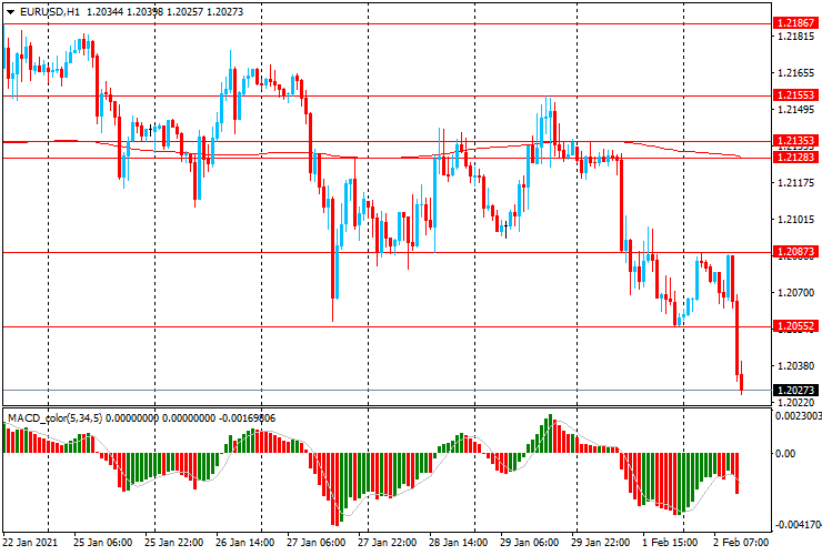 Альтернативный сценарий - коррекция, прорыв сопротивления $1.2055 (минимум 27 января и 1 февраля) и может быть рост к сессионному максимуму $1.2090