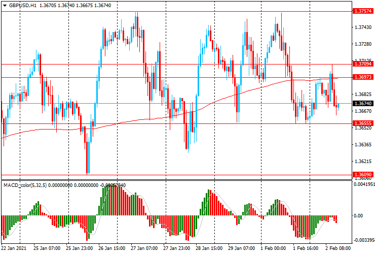 Основной сценарий продвижения пары — прорыв сопротивления $1.3700-10 (сессионный максимум, МА (200) Н1) и затем, может быть, рост к $1.3760 (максимум 27 января и 1 февраля)