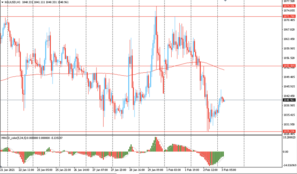 Основной сценарий продвижения пары — продолжение нисходящего движения к $1830 (минимум 2 февраля). Альтернативный сценарий подразумевает окончательное закрепление выше MA 200 H1 с последующим ростом к $1875 (максимум 29 января).