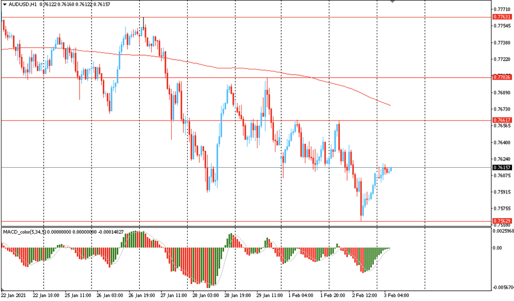 Основной сценарий продвижения пары — продолжение нисходящего движения к $0.7565 (минимум 2 февраля). Альтернативный сценарий - окончательное закрепление выше MA 200 H1 с последующим ростом к $0.7780 (максимум 21 января).