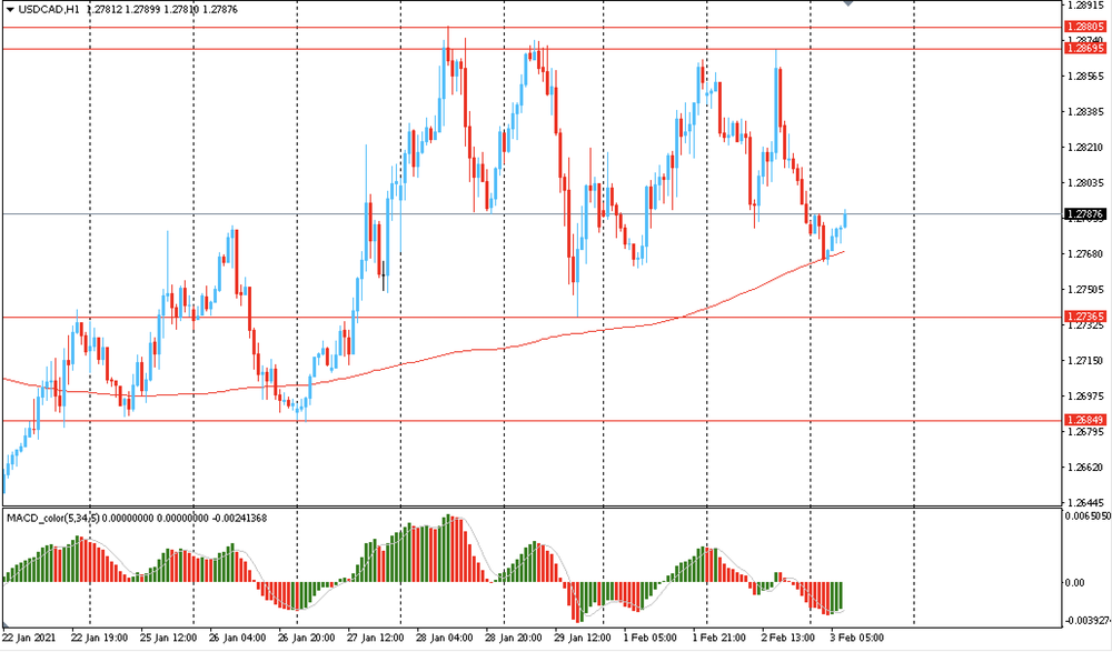Основной сценарий продвижения пары — продолжение роста к С$1.2870 (максимум 2 февраля). Альтернативный сценарий — окончательное закрепление ниже МА (200) Н1 с последующим падением к С$1.2590 (минимум 21 января).