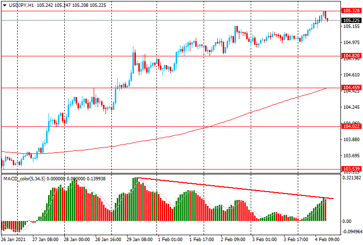 Основной сценарий продвижения пары — прорыв сессионного максимума Y105.30 и может быть рост к Y105.65 (максимум 11 ноября)