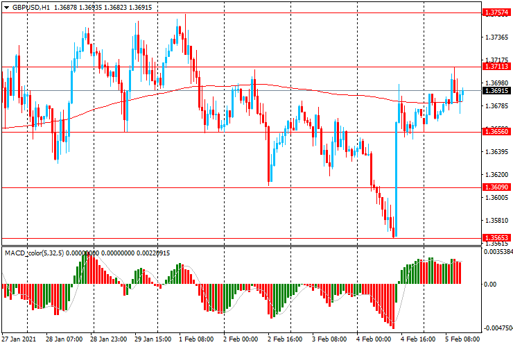 Основной сценарий продвижения пары — прорыв сессионного максимума $1.3710 (максимум 2 февраля) и затем, может быть, рост к $1.3760 (максимум 27 января и 1 февраля)