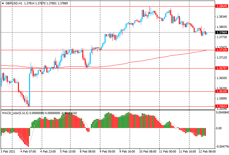 Альтернативный сценарий - продолжение нисходящего движения к $1.3735 (минимум 9 февраля, МА (200) Н1) и затем может быть к $1.3680 (минимум 8 февраля)