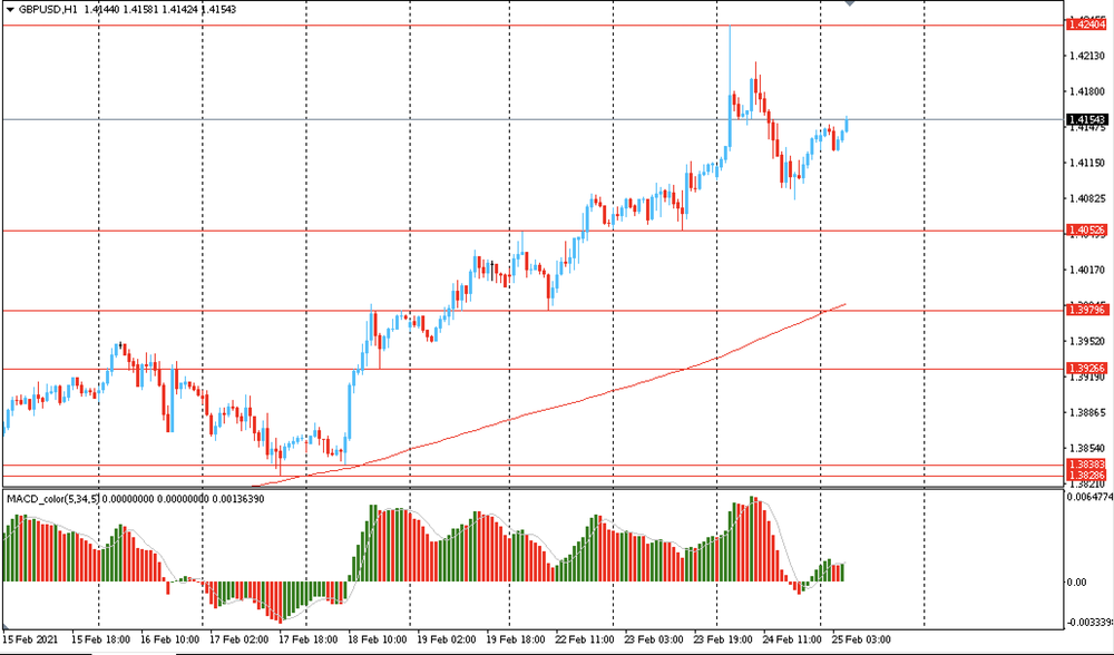 Основной сценарий продвижения пары — продолжение роста к $1.4240 (максимум 24 февраля). Альтернативный сценарий подразумевает закрепление ниже уровня MA 200 H1 с последующим снижением к $1.3775 (минимум 12 февраля).
