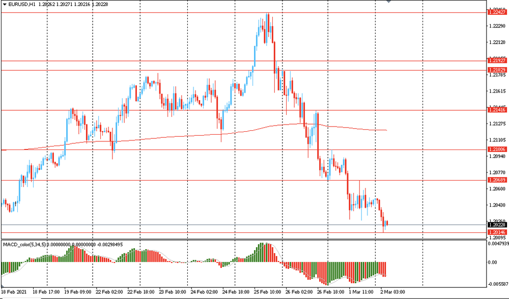 Основной сценарий продвижения пары — продолжение снижения к $1.2015 (сессионный минимум). Альтернативный сценарий подразумевает закрепление выше MA 200 H1, с последующим ростом к $1.2240 (максимум 25 февраля).