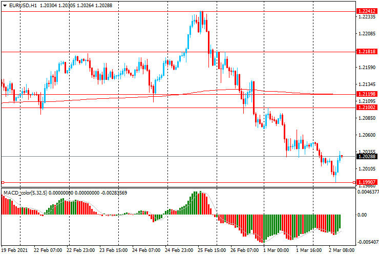 Уровни поддержки расположены на: $1.1990, $1.1950, $1.1920