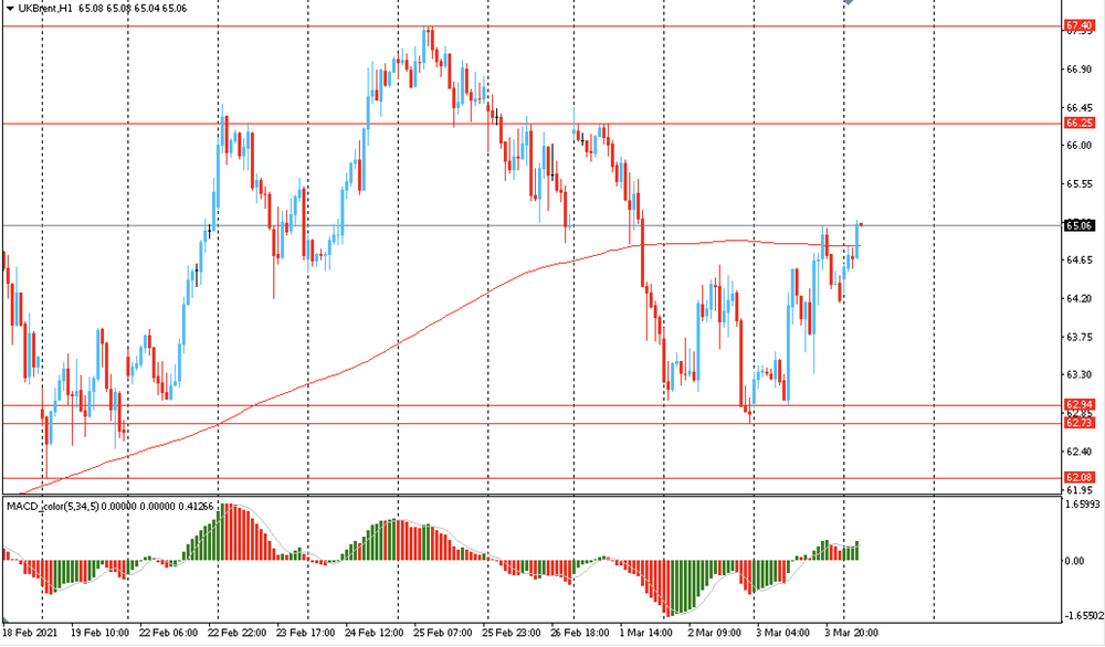 Основной сценарий продвижения пары — последующий рост к $66.25 (максимум 1 марта). Альтернативный сценарий предполагает окончательное закрепление ниже MA 200 H1 с последующим снижением к $62.10 (минимум 19 февраля).