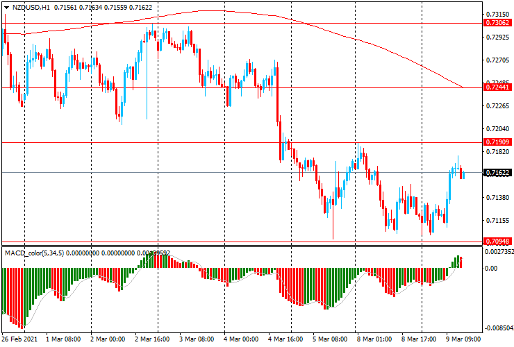 Сопротивления находятся на отметках: $0.7190, $0.7245, $0.7305