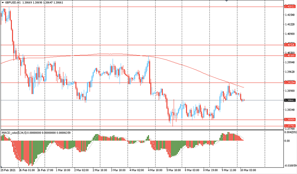 Основной сценарий продвижения пары — продолжение снижения к $1.3800 (минимум 9 марта). Альтернативный сценарий подразумевает окончательное закрепление выше уровня MA 200 H1 с последующим ростом к $1.4180 (максимум 25 февраля).