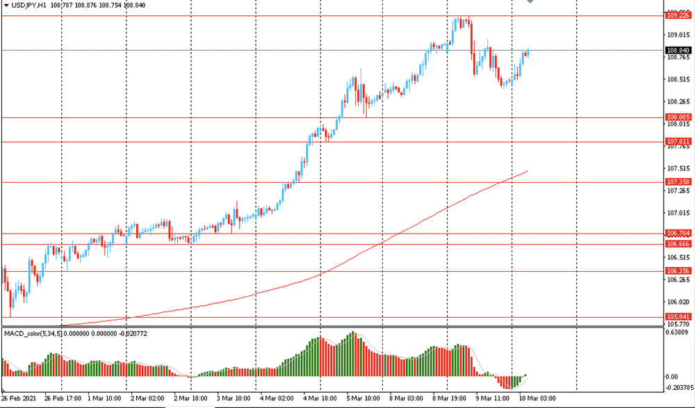Основной сценарий продвижения пары — продолжение восходящего движения к Y109.20 (максимум 9 март). Альтернативный сценарий предполагает закрепление ниже MA 200 H1, с последующим снижением к Y105.85 (минимум 26 февраля).