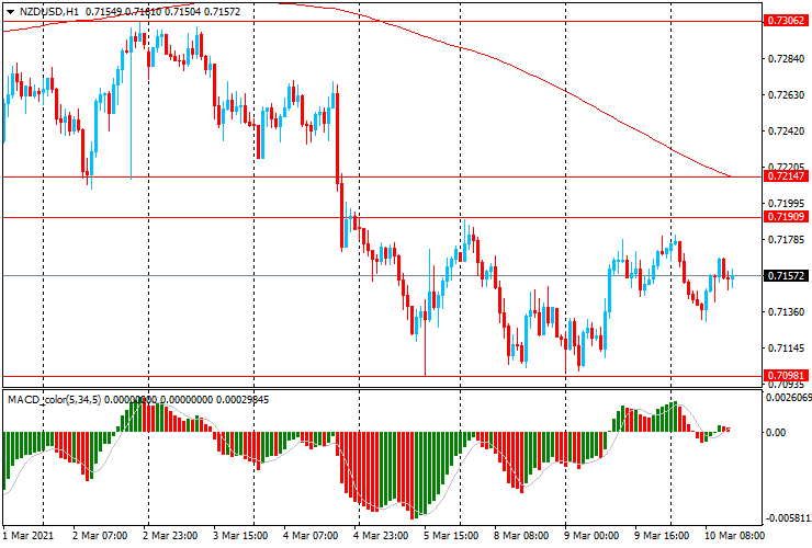 Альтернативный сценарий - прорыв области $0.7190-0.7215 (максимум 8 марта, МА (200) Н1) и, может быть, рост к 0.7305 (максимум 2-3 марта)