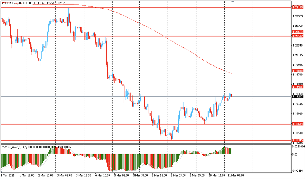 Основной сценарий продвижения пары — продолжение снижения к $1.1870 (минимум 10 марта). Альтернативный сценарий подразумевает закрепление выше MA 200 H1, с последующим ростом к $1.2110 (максимум 3 марта).