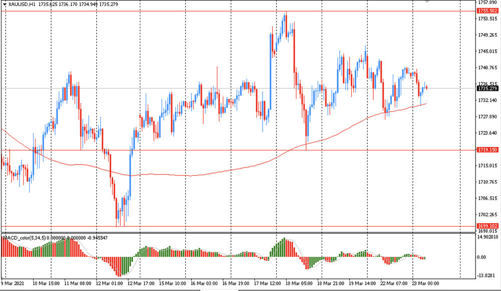 Основной сценарий продвижения пары — продолжение восходящего движения к $1755 (максимум 18 марта). Альтернативный сценарий подразумевает закрепление ниже MA 200 H1 с последующим снижением к $1700 (минимум 12 марта).