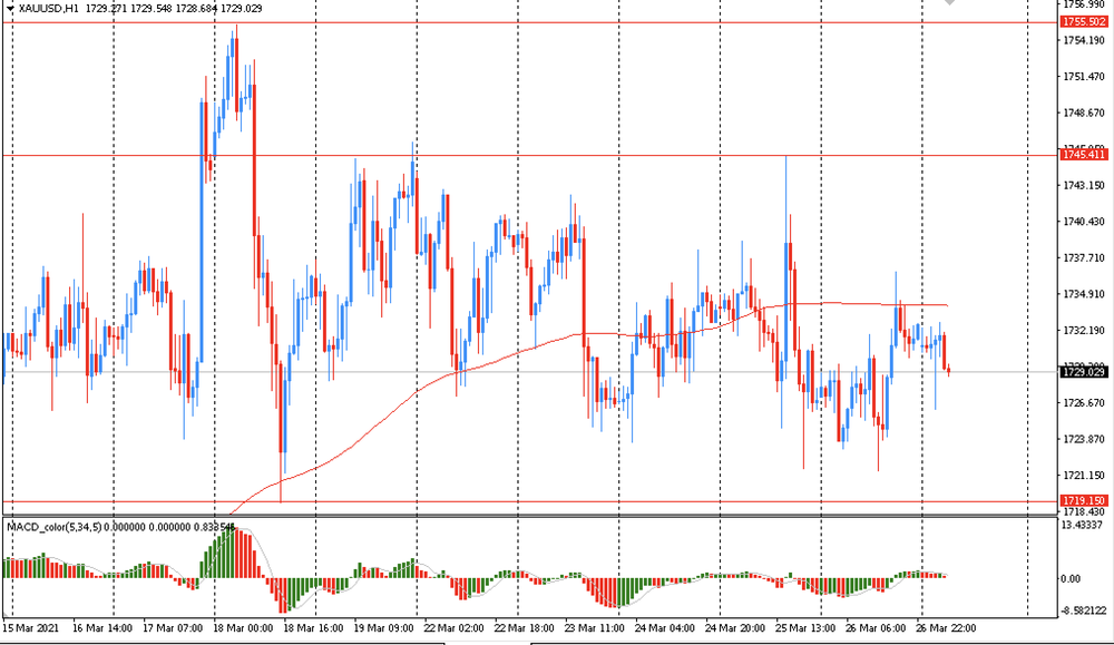 В пятницу пара XAU/USD торговалась разнонаправлено в диапазоне $1721-$1736 и закрыла день без существенных изменений. Сегодня золото торговалось в узком диапазоне $1726-32, оставаясь вблизи пятничной цены закрытия. На часовом графике XAU/USD все еще торгуется ниже линии скользящей средней МА (200) Н1 ($1733). На четырехчасовом графике ситуация аналогичная. Исходя из вышесказанного, вероятно, стоит придерживаться южного направления в торговле и пока пара остается ниже MA 200 H1, необходимо искать точки входа на продажу на формирование коррекции.