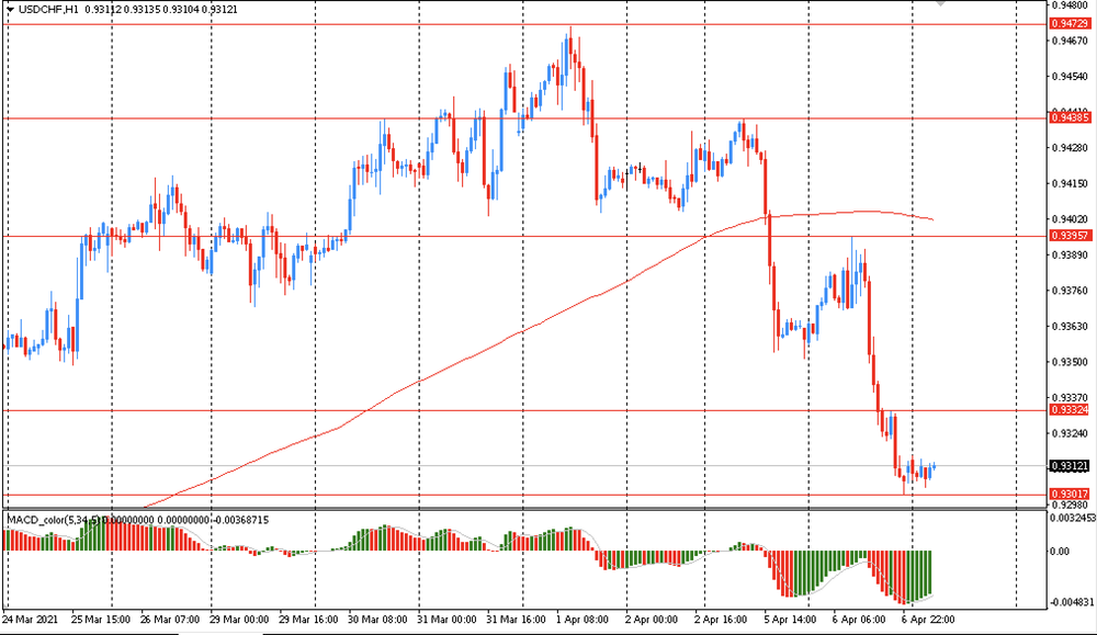 Основной сценарий продвижения пары — последующее снижение к Chf0.9300 (минимум 6 апреля). Альтернативный сценарий — закрепление выше уровня MA 200 H1, с последующим ростом к Chf0.9470 (максимум 1 апреля).