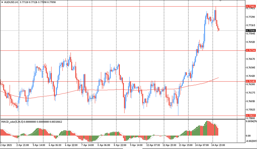 Основной сценарий продвижения пары — продолжение восходящего движения к $0.7745 (сессионный максимум). Альтернативный сценарий - закрепление ниже MA 200 H1 с последующим снижением к $0.7560 (минимум американской сессии 1 апреля).