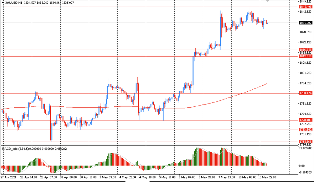 Вчера пара XAU/USD торговалась разнонаправлено в диапазоне $1829-$1845 и закрыла день без существенных изменений. Сегодня золото также торговалось в узком диапазоне $1830-38, оставаясь вблизи 13-недельного максимума. На часовом графике XAU/USD все еще торгуется выше линии скользящей средней МА (200) Н1 ($1794). На четырехчасовом графике ситуация аналогичная. Исходя из вышесказанного, вероятно, стоит придерживаться северного направления в торговле и пока пара остается выше MA 200 H1, необходимо искать точки входа на покупку на формирование коррекции.