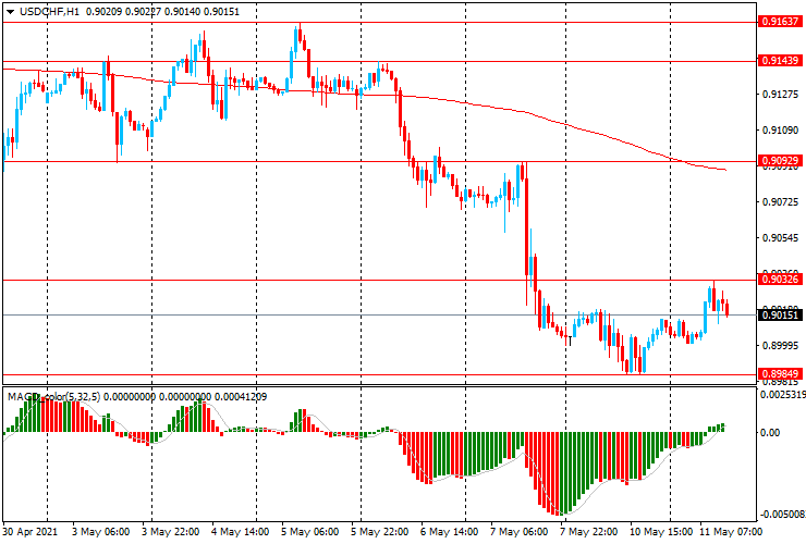 Альтернативный сценарий — прорыв сессионного максимума Chf0.9030 и может быть рост к Chf0.9090 (максимум 7 мая, МА (200) Н1)