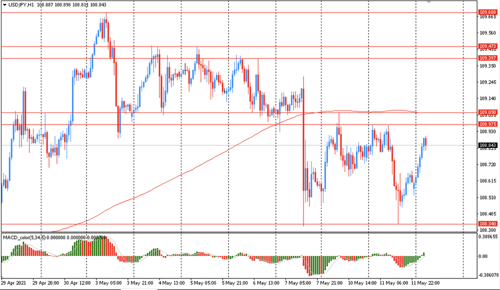Основной сценарий продвижения пары — продолжение восходящего движения к Y108.95 (максимум 11 мая). Альтернативный сценарий предполагает закрепление ниже MA 200 H1, с последующим снижением к Y108.35 (минимум 7 мая).